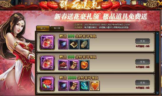 2.活动规则:每天赠送鲜花,获得魅力值可以领取相应奖励。