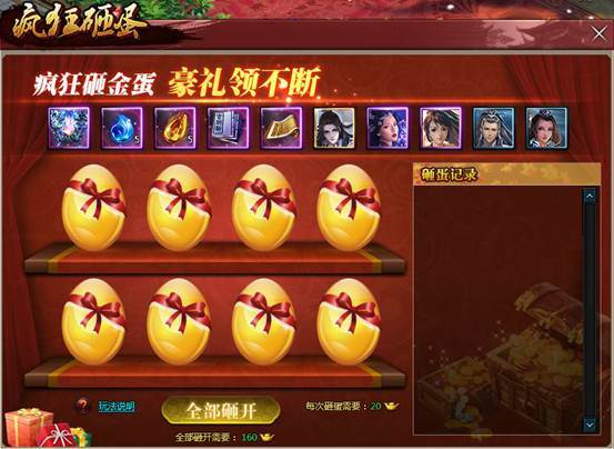 2.活动内容:活动期间玩家可以无限制砸蛋,有机会获得高级物品。