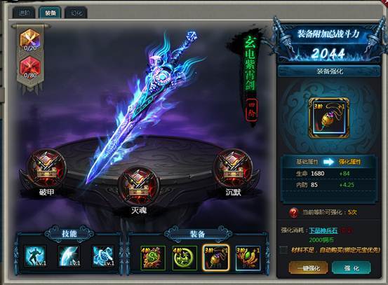 (4)神兵的技能可以通过使用神兵技能升级书来进行升级,升级过后的技能增加更高的人物角色属性;