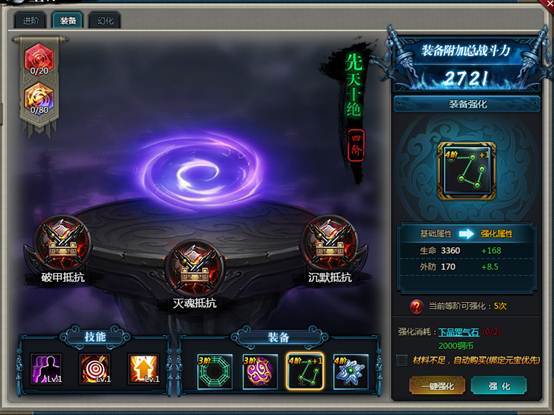 (4)罡气每进阶1次,都会增加装备的可强化次数;